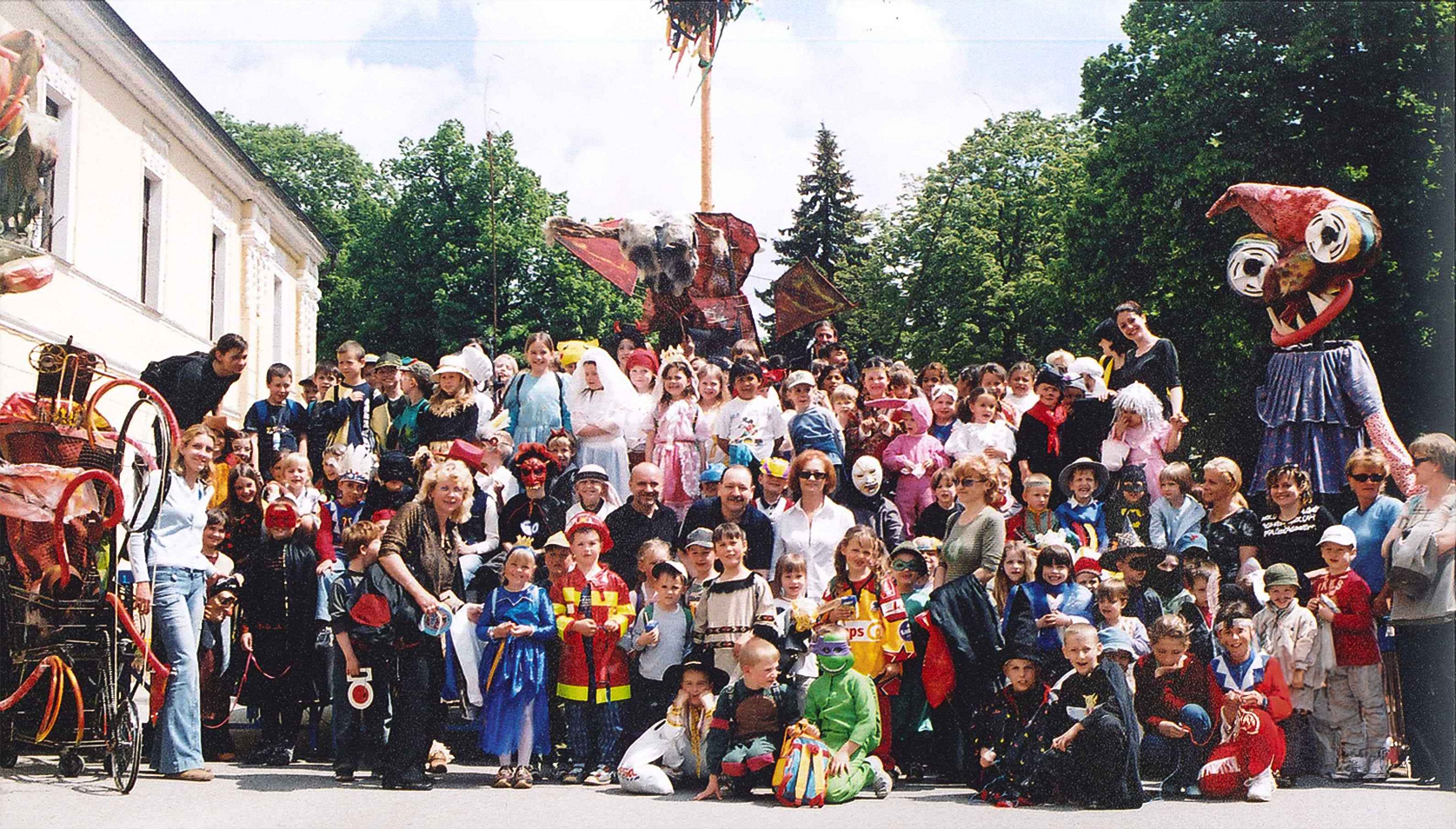 Zázračný oriešok 2004. Sprievod mestom so spisovateľmi (Ján Uličiansky, Daniel Hevier) a ďalšími tvorcami, pracovníkmi knižnice a deťmi piešťanských škôl.